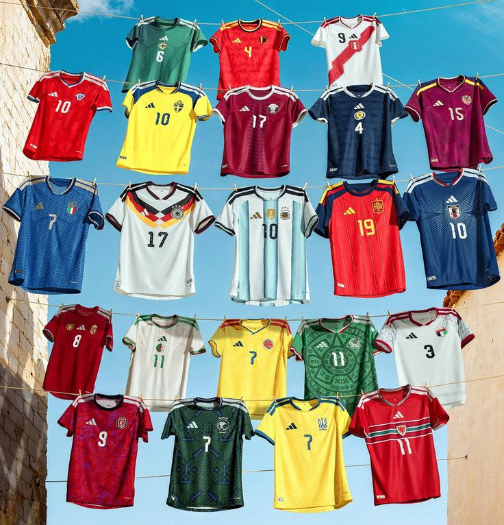 Texte : Porte les couleurs du monde avec fierté et affirme ton identité grâce à des maillots conçus pour allier style, confort et performance.